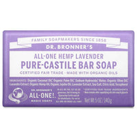 Scented with pure lavender and lavandin oils to calm the mind and soothe the body! Dr. Bronner's Lavender Bar Soap is made with certified fair trade ingredients and organic hemp oil for a soft, smooth lather that won't dry your skin. 100% biodegradable in a 100% post-consumer recycled wrapper.