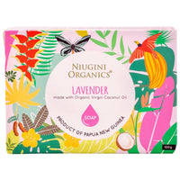 Feel clean and refreshed with Niugini Organics’ Coconut Oil Soap Lavender. This handmade soap is made using a traditional boiled method and only contains four ingredients including 100% pure cold pressed virgin organic coconut oil. Added lavender essential oil provides a soothing scent. A deep cleansing soap with a luxurious lather.