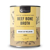 Bone broth has been made for hundreds of years by our grandparents and their grandparents due to traditional gut loving properties. The amino acids present in Beef Bone Broth are in a specific ratio that is unique, and otherwise not available in the lean cuts of meat commonly consumed, but which are beneficial. Our Beef Bone Broth also contains the added benefit of Vitamin B12 that, as part of a healthful and varied diet, will support immunity, as well as Turmeric with 5 % curcumin content for potency. Leading busy lives can make it hard to find time to make bone broth from scratch. Our Beef Bone Broth powder is ready in seconds, as tasty and nutritious as homemade and easy to take on the go!