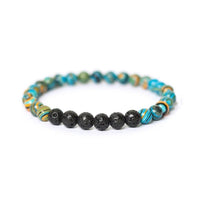 The Cosmic Diffuser Bracelet (blue) includes both Lava Stone beads and beads made of dyed Malachite. Malachite is a stone of luck that promotes abundance and acquisition. making it ideal for encouraging intention, balance, and manifestation. Lava Beads are made from Natural Volcanic Basalt. The lava stones acts as a sponge-like carrier as it soaks up your oils and retains them in the core of the Bead.