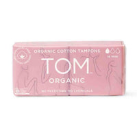 No chlorine bleaches, no dyed strings, no polypropylene (plastic) outer layers. TOM tampons contain only 1 ingredient: certified organic cotton. They are as comfortable, easy to use and absorbent as any other tampon. Plus, the cleverly designed slim packs mean no more tampons jumping around in your handbag. Available in Mini, Regular & Super.