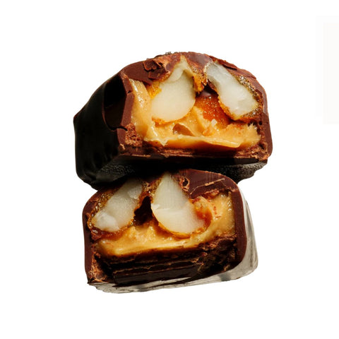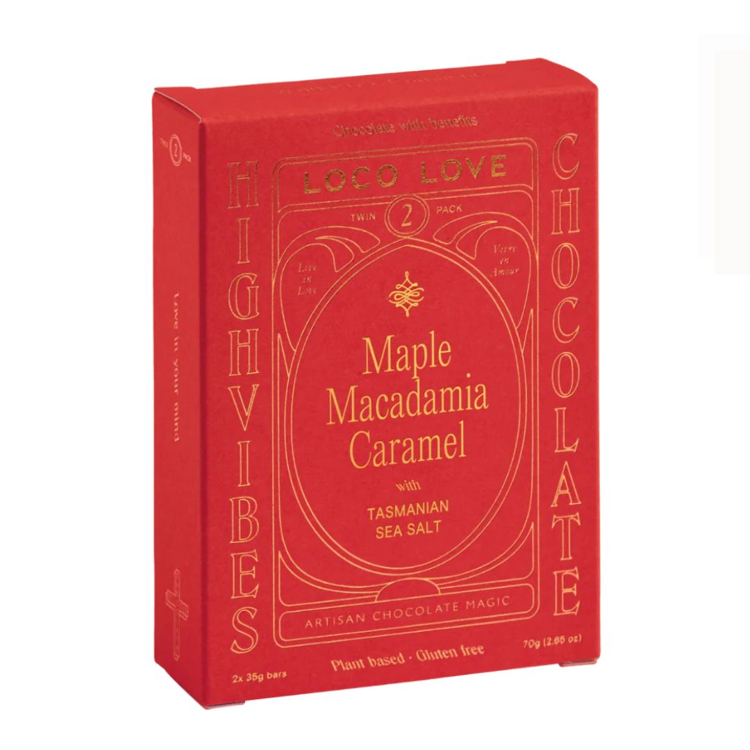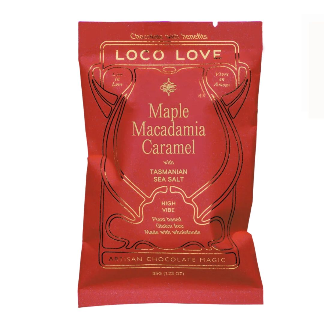 *cacao paste, *coconut blossom sugar, *cacao butter, *brown rice syrup, macadamia (22%), *coconut milk, *maple syrup (2%), olive oil, caramel extract (mct based) (<1%), Australian sea salt, [Cacao solids 48.5%].