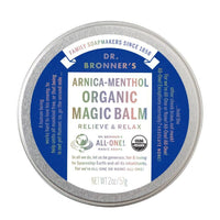 Dr. Bronner’s Arnica-Menthol Organic Magic Balm helps cool and soothe sore muscles and achy joints with a potent blend of arnica, camphor, menthol and peppermint oils. Our base of organic beeswax and organic oils – avocado, coconut, olive, jojoba and hemp – nourish and moisturize skin with no synthetic ingredients – none!