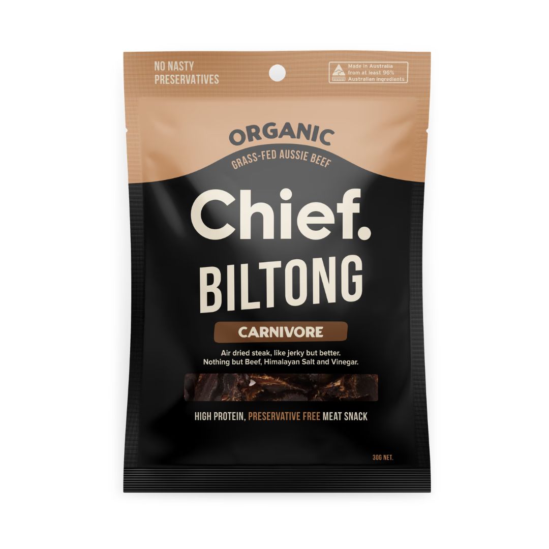 Just like slow cooking is better than zapping in a microwave, we slow air dry our beef which means it's naturally more tender and healthier than jerky. Free from all the nasty stuff you usually find in dried and cured meats, very low in sugar and taste the difference with organic, grass-fed and grass-finished Aussie beef. The perfect Carnivore snack.
