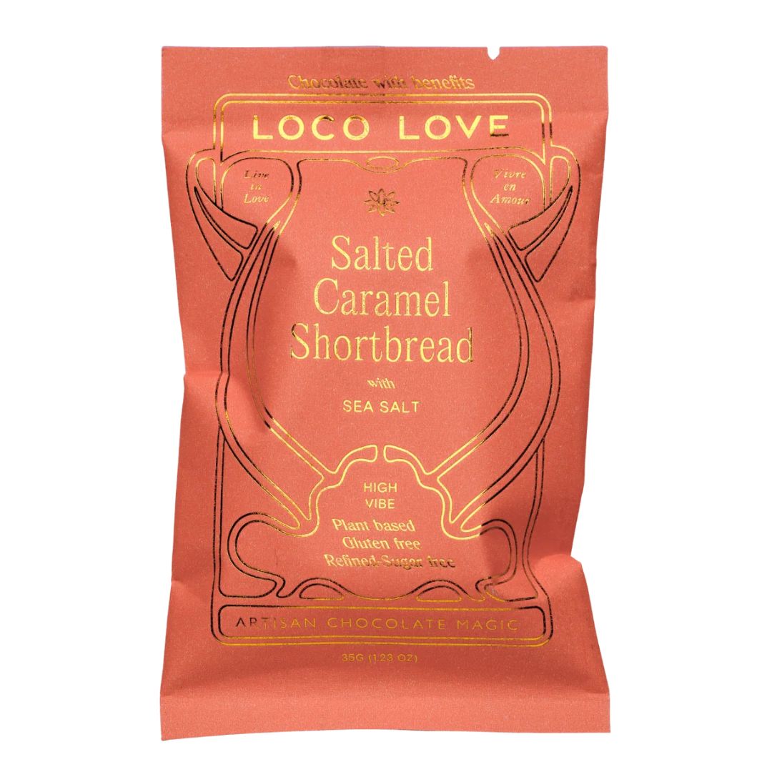 *cacao paste, *coconut sugar, *cacao butter, *brown rice syrup, *coconut milk, *shortbread (20%) (*rice flour, *maple syrup, *coconut oil, *tapioca flour, *coconut sugar, *chickpea flour, *vanilla bean, baking soda (aluminium free)), caramel extract (<1%), Tasmanian sea salt (<1%). [Cacao solids 25%]. *Organic. May be present: sesame, peanut, almond, hazelnut, macadamia, cashew, pistachio, pecan.