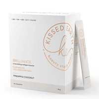 We are incredibly proud to source our collagen from Gelita – global ethical leaders in quality collagen production with a zero waste policy, hailing from Germany. Brilliance is delivered in convenient single serve sachets that you can take with you anywhere and contain an impressive 5000mg of collagen peptides per serve. Our delicious and refreshing pineapple and coconut flavour transports you straight to a summer vacation and can be enjoyed simply mixed with water. Add some ice on a balmy day or use it to create a tropical smoothie or zesty salad dressing! Not only will our Brilliance work to support and strengthen your bones, joints, ligaments, tendons and your gut, but it will also provide the important structural support to your hair, skin and nails – helping fight the visible signs of ageing and laying the foundation to a more vibrant you.