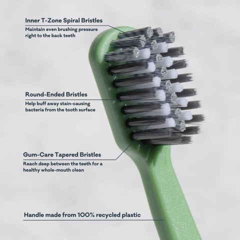 Our brush head features T-Zone Ultra-Fine Spiral Filaments that ensure even pressure throughout the brushing process, delivering optimal polishing power. This technology guarantees a comprehensive clean, leaving your teeth sparkling and plaque-free.