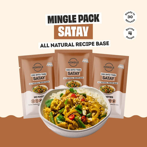 MINGLE'S SATAY RECIPE BASE helps you create a healthy and fuss-free satay stir-fry, whipped up within 30 minutes. Mingle's Satay Recipe Base is super versatile and can be cooked with any type of protein and any range of veggies to create a delicious, healthy meal!