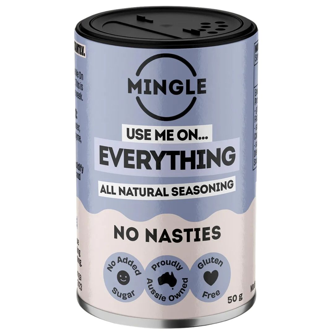 MINGLE'S USE ME ON EVERYTHING SEASONINGis the go-to flavour punch that you can use for every meal. This dials up the flavour on meat and vegetables to the next level. The creations really are endless with this all-natural spice blend.