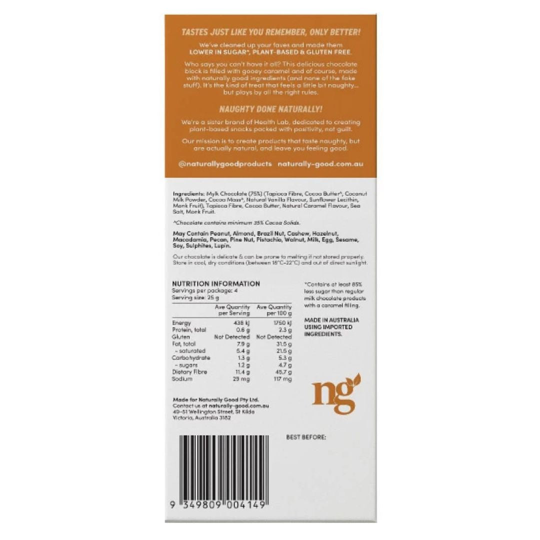 mylk chocolate (75%) (tapioca fibre, cocoa butter, coconut milk powder, cocoa mass, natural vanilla flavour, sunflower lecithin, monk fruit), tapioca fibre, cocoa butter, natural caramel flavour, sea salt, monk fruit. Chocolate contains minimum 35% cocoa solids.