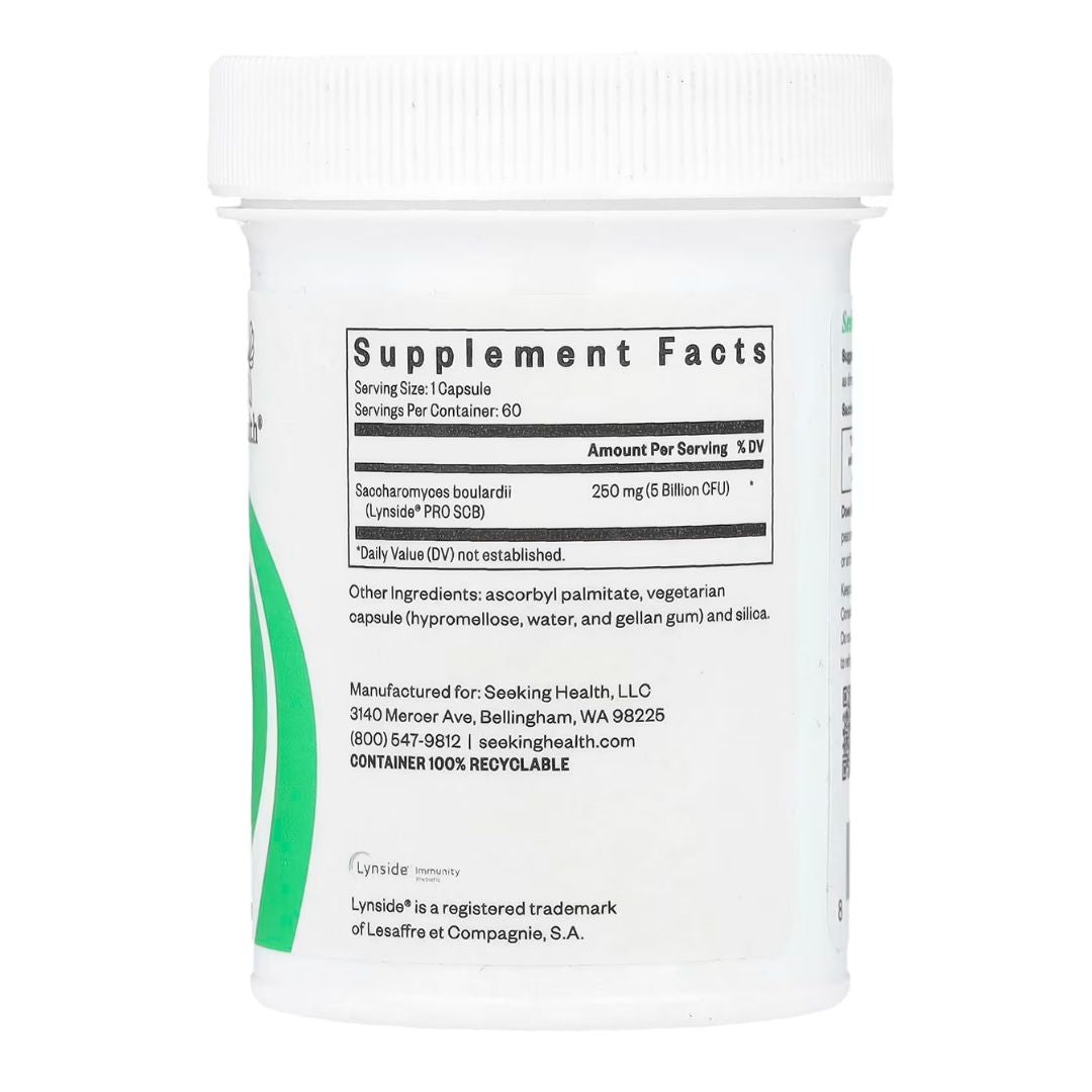 Seeking Health®’s Saccharomyces Boulardii contains 5 billion CFUs (Colony Forming Units) in each one capsule serving.