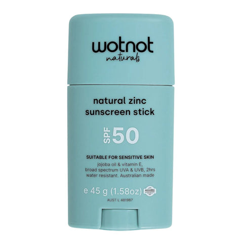 Wotnot Natural Zinc Sunscreen Stick SPF 50 offers high-level, broad-spectrum protection against UVA and UVB rays in a convenient, travel-friendly format. Perfect for on-the-go application, this easy-to-use stick glides on smoothly, leaving a matte finish that works well under makeup. Enriched with natural jojoba oil, it nourishes and protects even sensitive skin while being completely vegan-friendly.