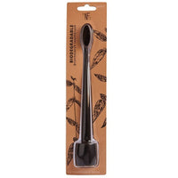 NFco Bio Brush & Stand in Pirate Black comprises an attractive, ivory-coloured toothbrush with soft, BPA-free, tapered nylon bristles that are recyclable, and a non-GMO cornstarch handle, which is biodegradable when composted. The brush comes with a convenient, matching, resin toothbrush stand. The "plastic" wrapping is also made from cornstarch and is completely biodegradable.