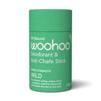 Woohoo Deodorant & Anti-Chafe stick in Wild is an extra-strength formula with a zesty citrus scent to eliminate body odour all day long. It's great for those who need extra protection from excessive sweating during prolonged workouts. It's free from essential oils, pH-adjusted to be gentle on your skin, aluminium free and now lives in an eco-friendly biodegradable cardboard tube. Like all Woohoo sticks, Zesty is simple to apply by quickly swiping on to your skin, no need to apply with your hands. If you tend to suffer from skin-on-skin or skin-on-clothing chafing and discomfort, apply the Woohoo stick to the affected areas. Have peace of mind knowing you will be smelling fresh and chafe-free all-day.